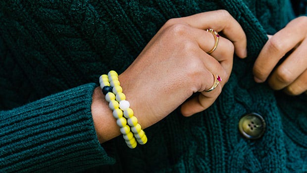 Introducing the Lokai + Pantone bracelet, in celebration of the Pantone Color of the Year 2021: Pantone 17-5401 Ultimate Gray and Pantone 13-4607 Illuminating. A marriage of color conveying a message of strength and hopefulness, this pairing brings us back to balance by emboldening the spirit and highlighting our need to be seen, recognized, valued, and to have our voices heard.